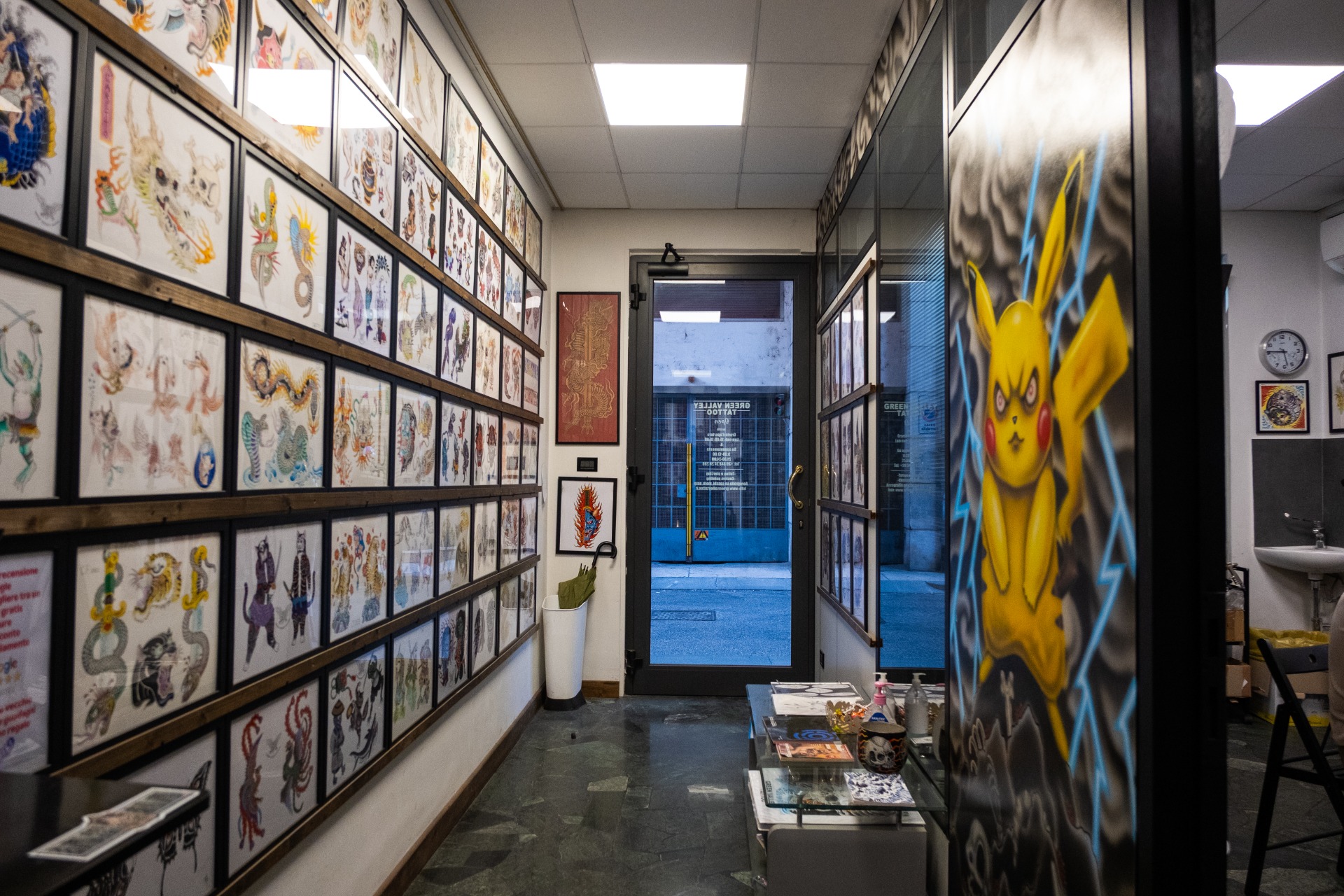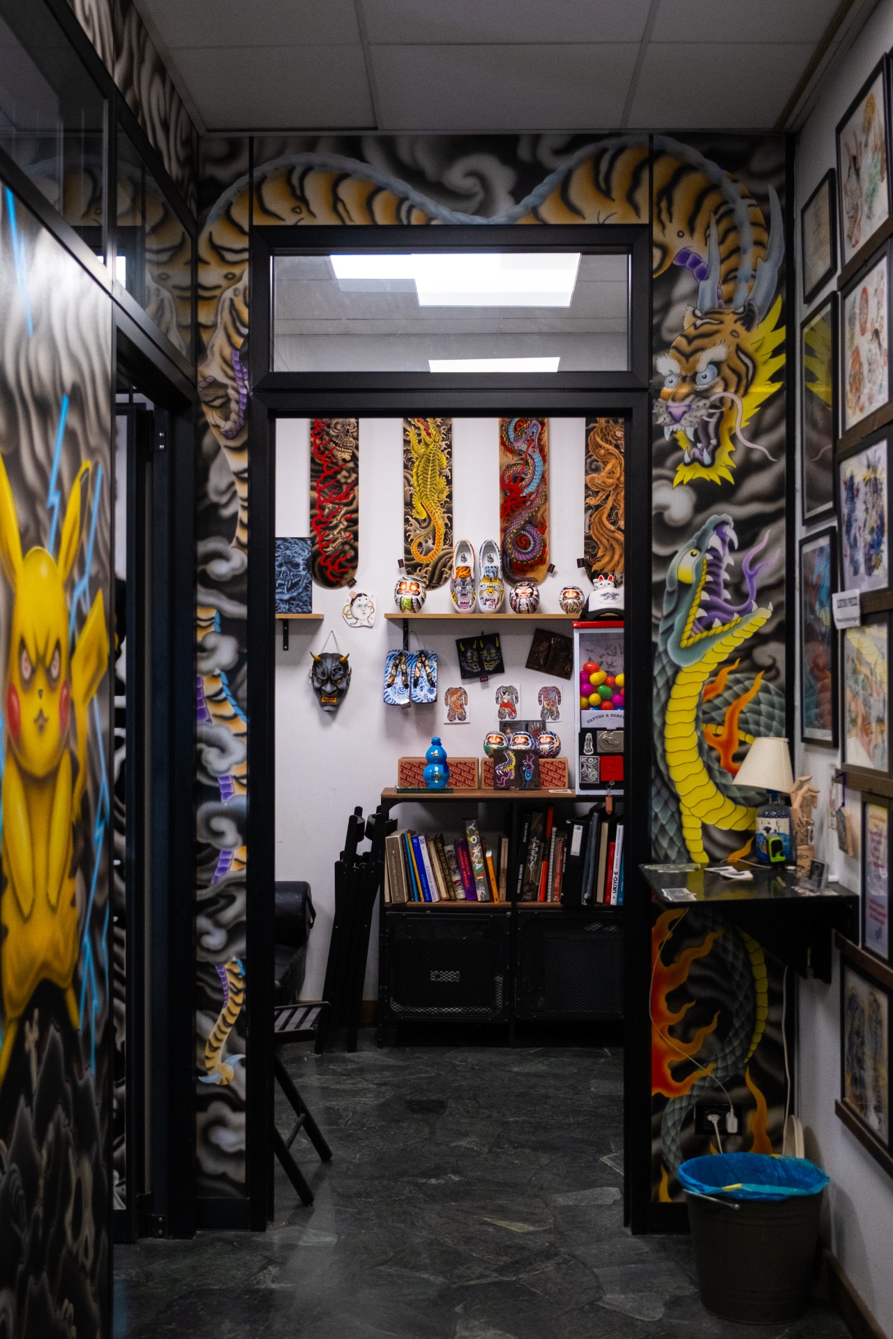 È uno uno studio d'arte e tatuaggio quindi la maggior parte del tempo dipingiamo e spesso neanche in studio perché le macchine o muri di locali o appartamenti, non si possono portare in negozio.